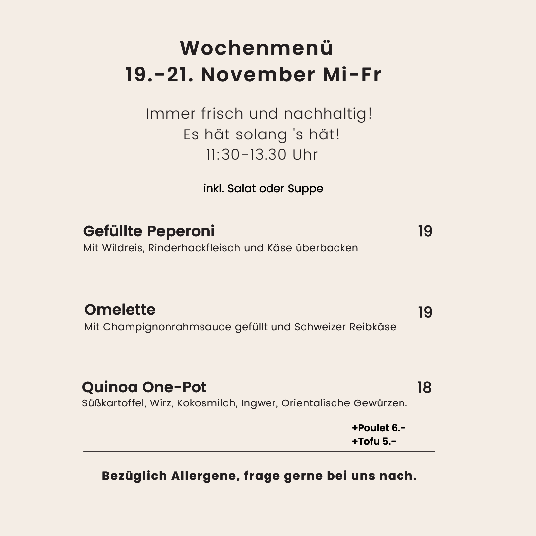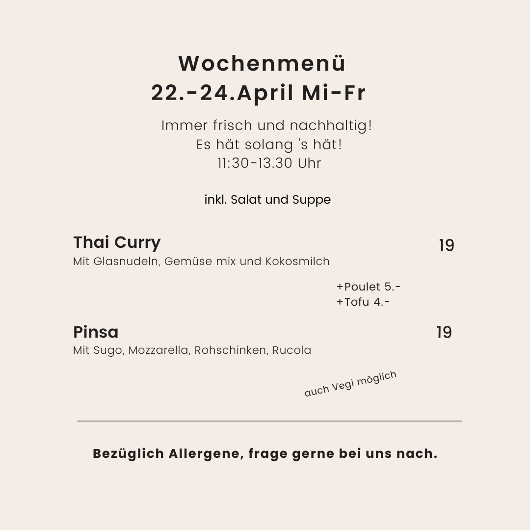 Neben Kaffee, Tee und unseren Zmorge-Klassikern findest du auch andere Köstlichkeiten auf der Bistro-Karte. Zum Beispiel kannst du Cocktails (auch alkoholfrei), erfrischende Drinks, Bier und Wein, leckere Paninis, Kuchen oder ein Eis bei uns geniessen.